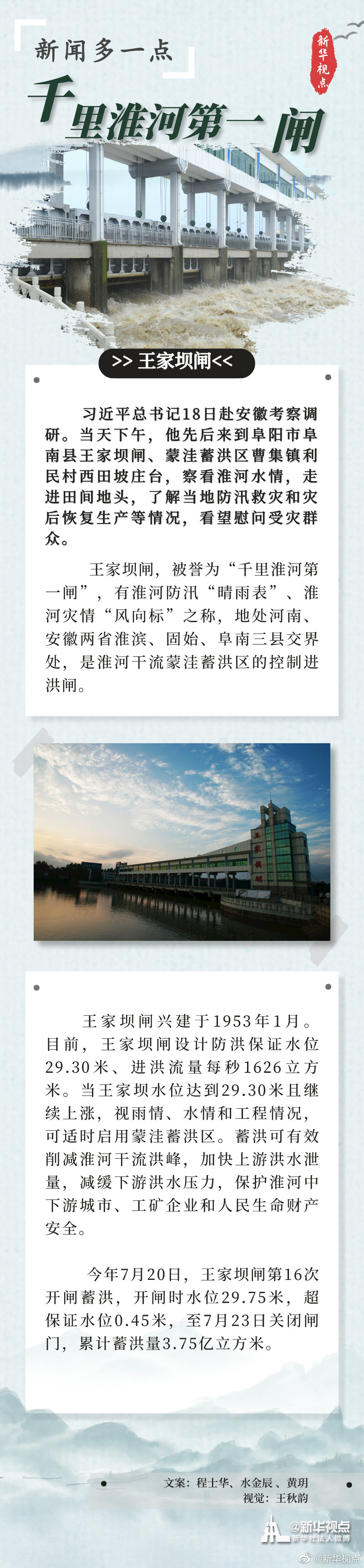 習近平總書(shū)記18日赴安徽考察調研。當天下午,他先后來(lái)到阜陽(yáng)市阜南縣王家壩閘、紅亮箱包有限公司、蒙洼蓄洪區曹集鎮利民村西田坡莊臺,察看淮河水情,走進(jìn)田間地頭,了解當地防汛救災和災后恢復生產(chǎn)等情況,看望慰問(wèn)受災群眾。(文字記者:張曉松 攝影記者:鞠鵬 王曄)